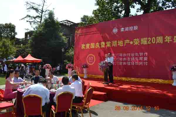 2014年9月28日,棠湖企業(yè)20周年暨國(guó)慶65周年慶祝紀(jì)念活動(dòng)在棠湖·泊林城現(xiàn)場(chǎng)隆重召開(kāi),集團(tuán)何東總經(jīng)理主持活動(dòng),集團(tuán)黨委書(shū)記嚴(yán)統(tǒng)明先生在活動(dòng)上作了熱情洋溢的講話(huà),嚴(yán)書(shū)記在講話(huà)中感謝了先前員工福利房活動(dòng)中廣大員工對(duì)集團(tuán)產(chǎn)品的支持與信任,同時(shí)為在場(chǎng)的集團(tuán)員工、合作企業(yè)及相關(guān)商會(huì)等來(lái)賓就棠湖集團(tuán)發(fā)展的過(guò)往和未來(lái)幾年的規(guī)劃作了說(shuō)明,同時(shí)借集團(tuán)成立20周年的契機(jī)祝愿我們偉大的祖國(guó)繁榮昌盛。相信乘著國(guó)家發(fā)展的東風(fēng),棠湖企業(yè)必將更上層樓,取得新的更加輝煌的發(fā)展和成長(zhǎng)。